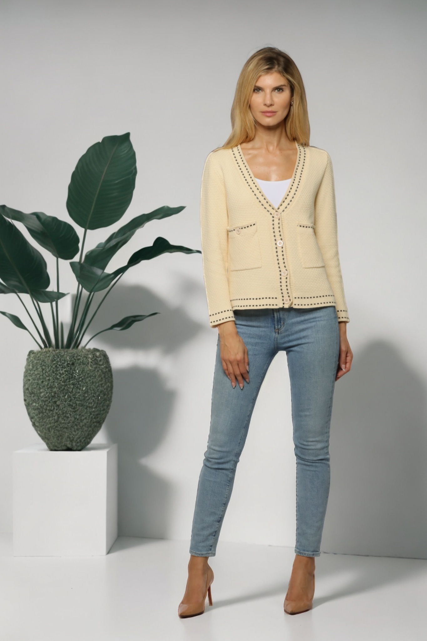 The Spring 2025 collection, ready for delivery on February 28, 2025, perfectly captures the essence of transitional spring fashion with modern, lightweight knitwear that blends style with comfort. This collection reflects key fashion trends like structured minimalism and playful textures, focusing on clean lines and versatile designs.