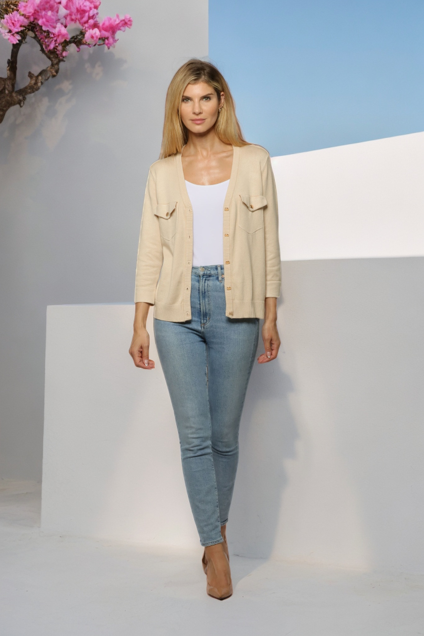 Whether it’s a chic striped top, a textural knit in neutral hues, or a statement-making piece in bright pink, this collection offers stylish, everyday wear perfect for the season ahead.